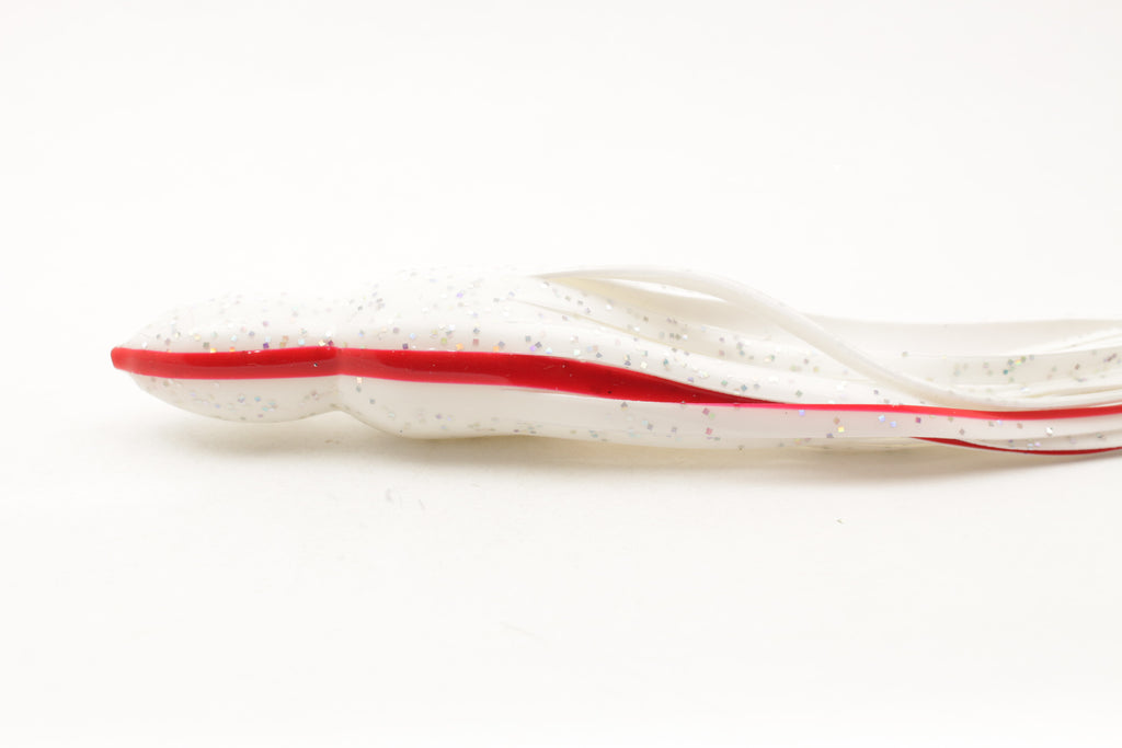Color scheme is white with silver glitter and red lateral lines.