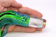 The 511 is a 9" skirt saddle sized flat nosed pusher style bait. It has a very subtle rear taper with fairly heavy front taper. It compares to the Koya Lures Hard Head in head shape but with a much shorter face length and much heavier taper. These lures were made using the same original JP Lures 511 molds. The lure originally got its name after producing a 511lb Blue Marlin. Despite its smaller stature, this lure has produced very large fish in its day. Works great in all sea conditions.