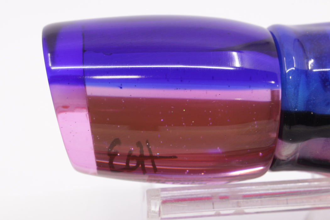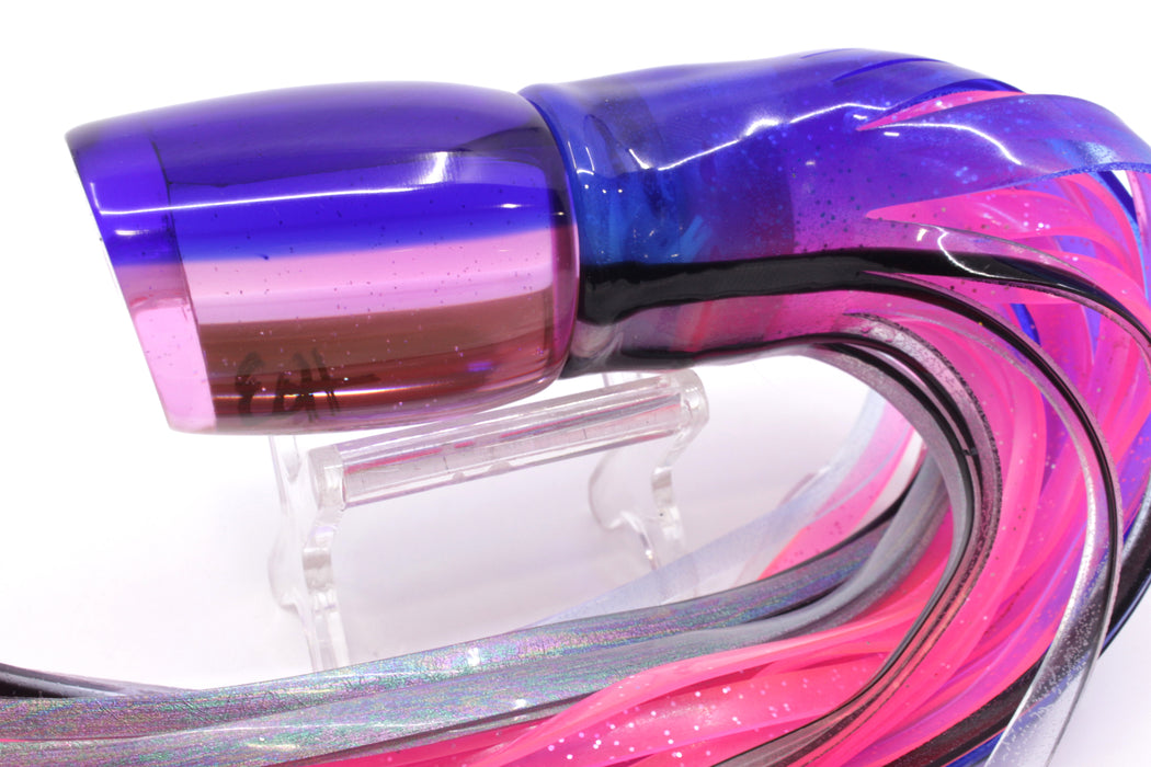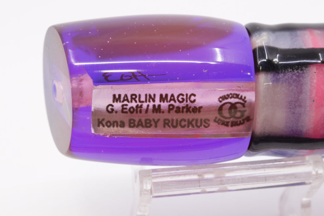 The Marlin Magic Baby Ruckus is the smaller version of perhaps their most famous Marlin lure in the Ruckus. This plunger shaped head has 10" sized skirt saddles with a fairly steady taper towards the slanted nose. The reputation of the lure can be derived from its name alone - it creates a "ruckus" in the water that stir up fish like crazy. Captain Marlin Parker himself has won more tournaments on his 12" Ruckus lure than any other lure in his arsenal including the 2002 World Cup and the 2004 Bisbees. Can be ran in any trolling position with success.