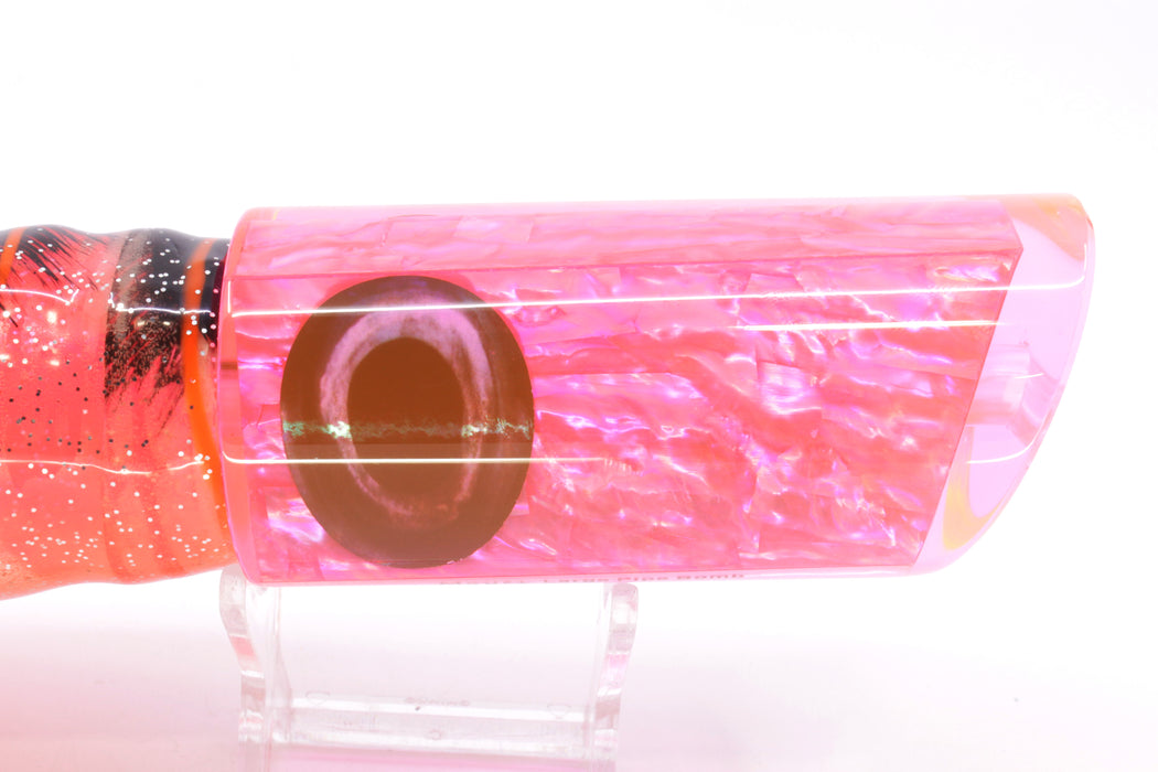 Moyes Lures Fluorescent Pink Awabi Large Pipe Bomb 14" 12.3oz Skirted Root Beer/Pink