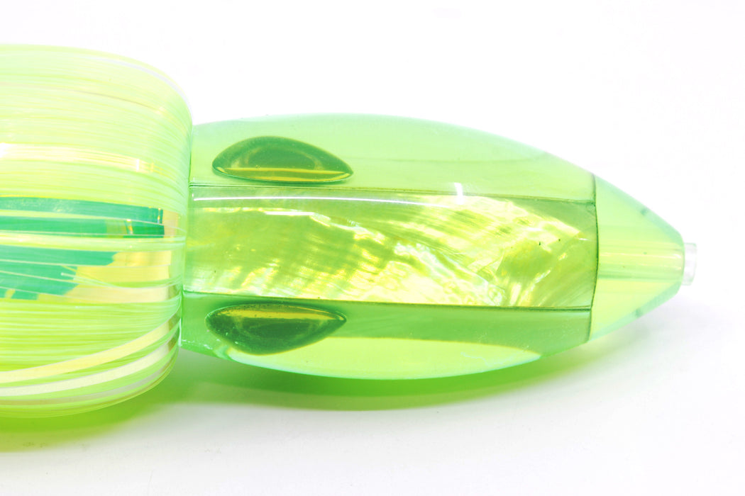 Moyes Lures Lime Green MOP Small Ono Bullet 7" 3.8oz Skirted Green-White Hair